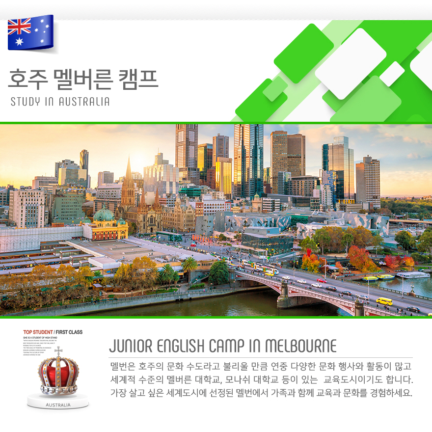 조기유학으로도 많이 선택하시는 멜번 지역은 학업 뿐만 아니라 시티라이프와 문화,맛집탐방,커피, 스포츠,쇼핑 등을