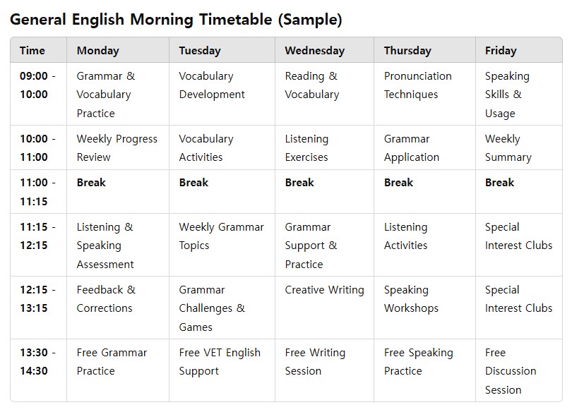 영어수업 샘플 시간표